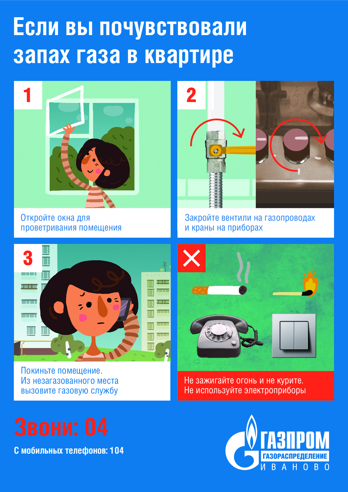 В связи с началом отопительного периода АО «Газпром газораспределение Иваново» информирует о повышении риска возникновения случаев отравлений угарным газом вследствие нарушения тяги в дымовых и вентиляционных каналах при понижении температуры окружающего воздуха. 99% всех происшествий приходится на холодное время года. Пострадавшими становятся жители, в квартирах и домах которых установлены газовые проточные водонагреватели (колонки) и отопительные котлы с открытой камерой сгорания.